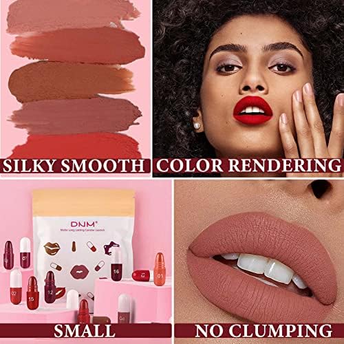 18Pcs Capsule Pills Lipstick Set,Mini Capsule Lipstick Set Matte Lipstick Long Lasting Waterproof Matte Finish Labiales Mate 24 Horas Originales Pill Shaped Cute Lipstick for Women