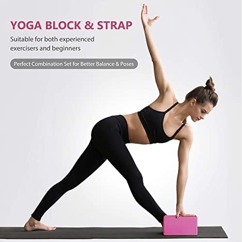 High Density EVA Yoga Foam Blocks (2 Pack) Plus Strap with Metal D-Ring -Size 9″ x 6″ x 3″